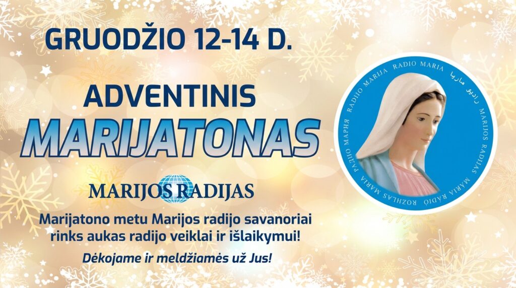RADIJO SAVANORIAI LAUKS VISŲ gruodžio 14 d., sekmadienį ADVENTINIAME MARIJATONE, kurio metu rinksime aukas Marijos radijo veiklai ir išlaikymui.Dėkojame ir laukiame Jūsų!