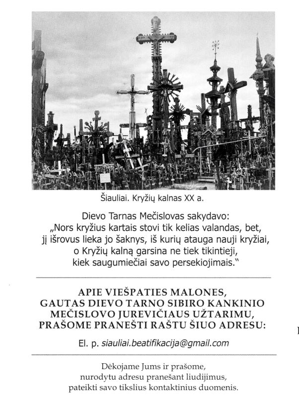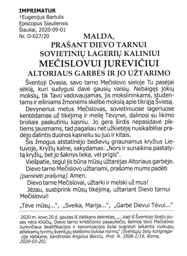 Mečislovas Jurevičius (1927–1999) – krikščionis pasaulietis, šeimos tėvas, sovietinių lagerių kalinys, aktyvus Bažnyčios ir tikėjimo gynėjas. Jo gyvenimas buvo paženklintas pasiaukojimu, ištverme ir drąsa liudyti Evangeliją persekiojimų ir neteisybės akivaizdoje. Jis dalyvavo pogrindinėje religinėje veikloje, platino „Lietuvos Katalikų Bažnyčios kroniką“, buvo Eucharistijos bičiulių sąjūdžio narys, nuosekliai gynė tikinčiųjų teises.