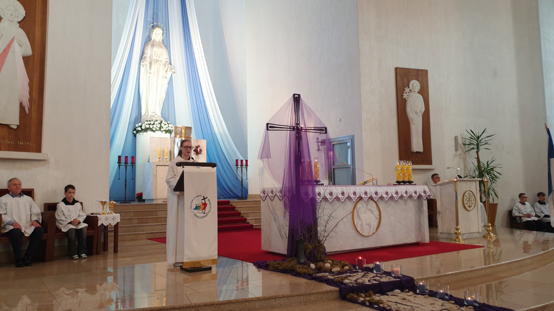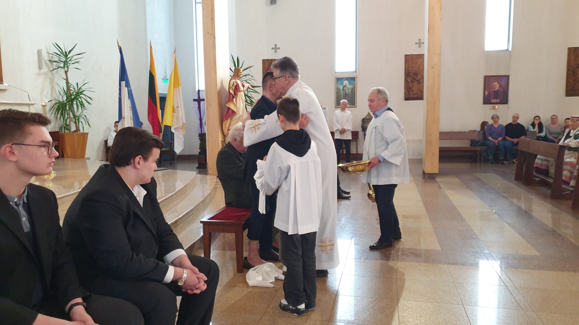 Didžiojo Ketvirtadienio Paskutinės Vakarienės šv. Mišių Evangeliją skaito kun. Jordanas Urbonas.† Jn 13, 1–15: Parodė jiems savo meilę iki galo.