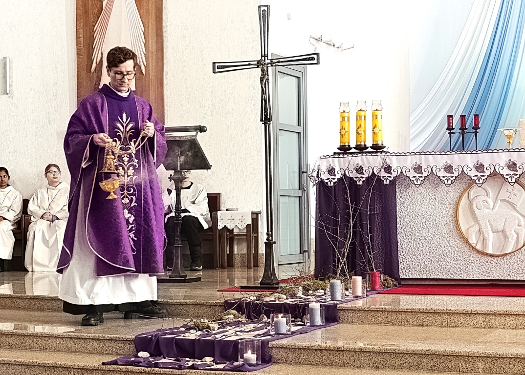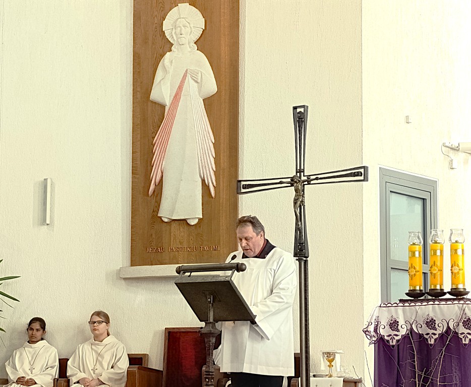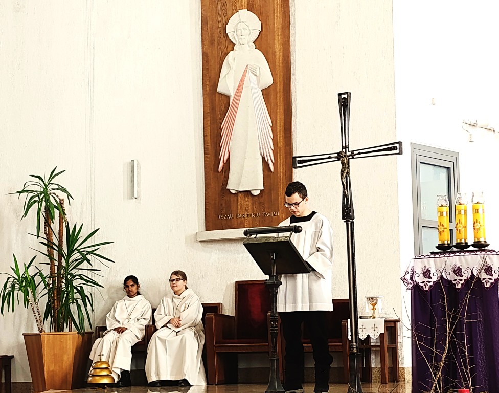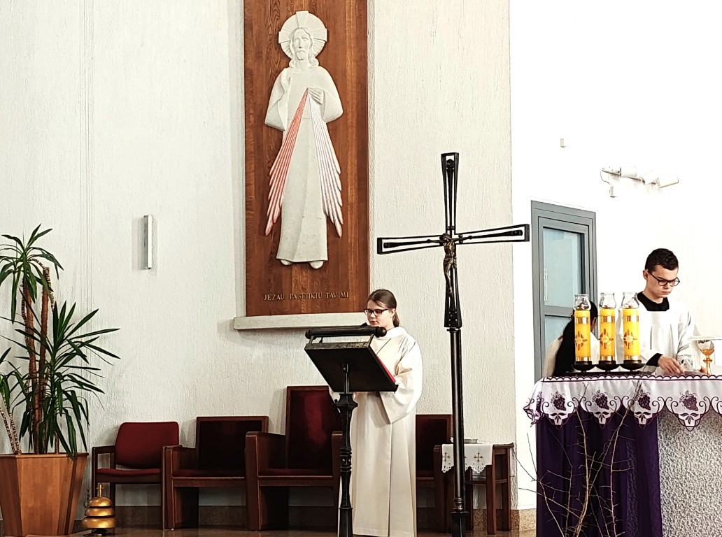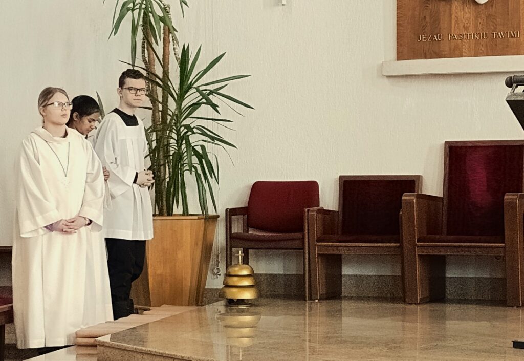 Ateikite, džiaugsmingai giedokime VIEŠPAČIUI,šaukime iš džiaugsmo mūsų išganymo Uolai!