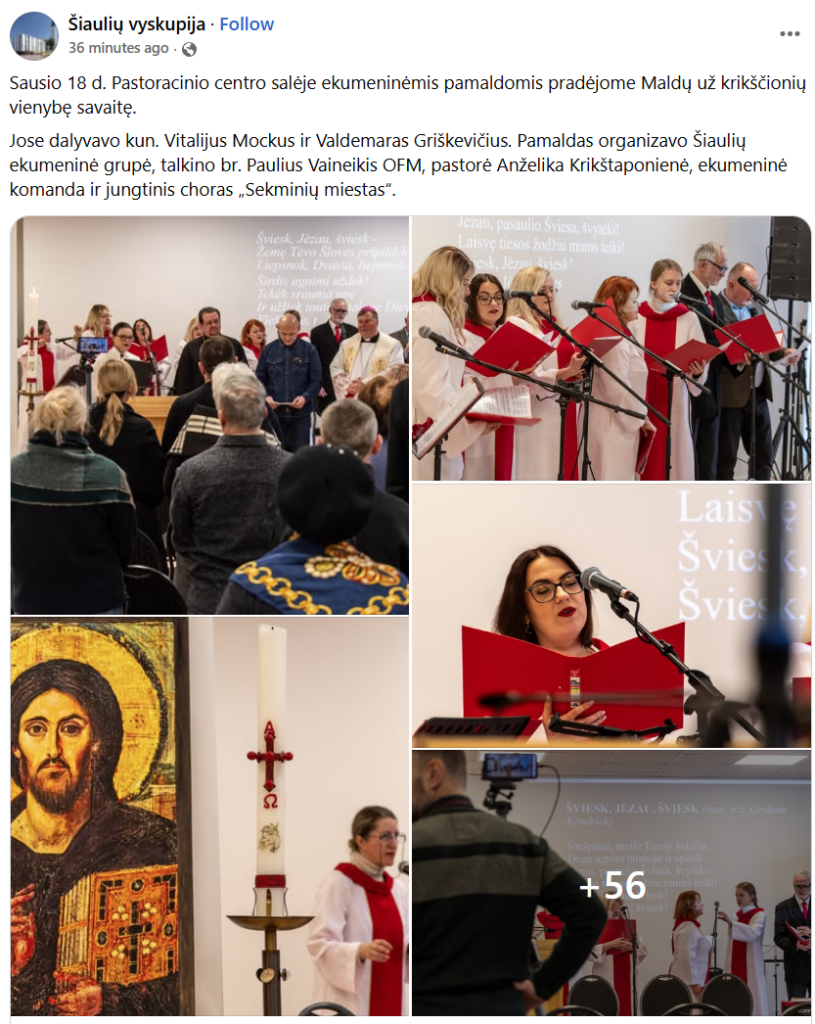 Sausio 18 d. Pastoracinio centro salėje ekumeninėmis pamaldomis pradėjome Maldų už krikščionių vienybę savaitę. Nuotraukos: Lino Atgalainio.