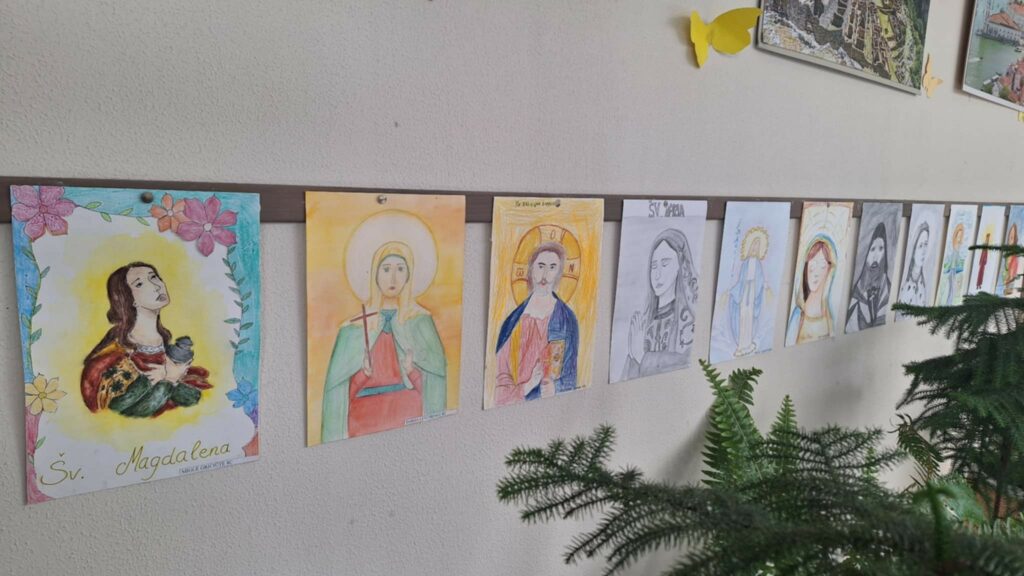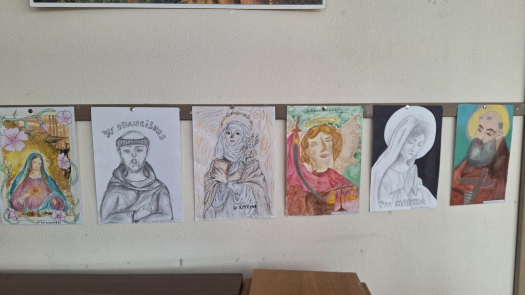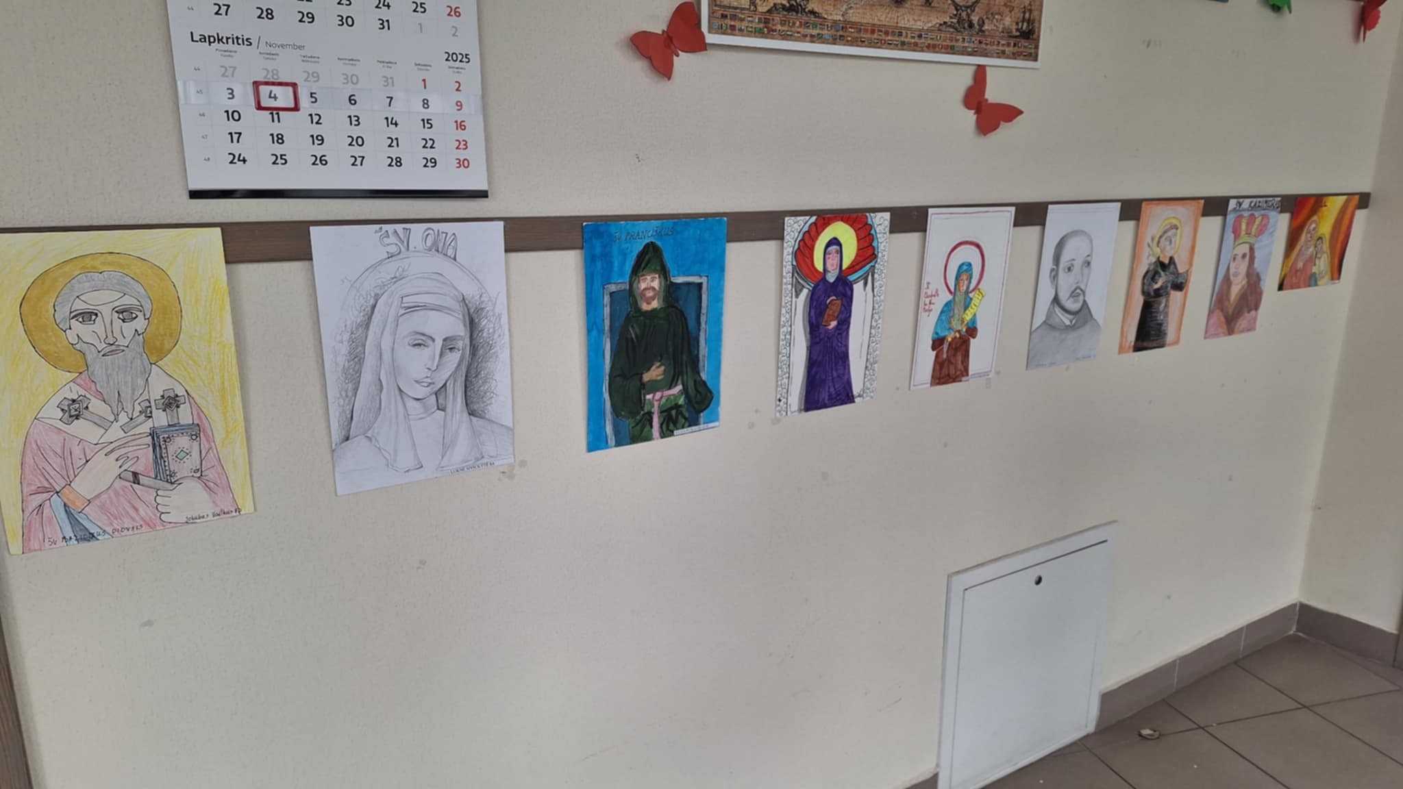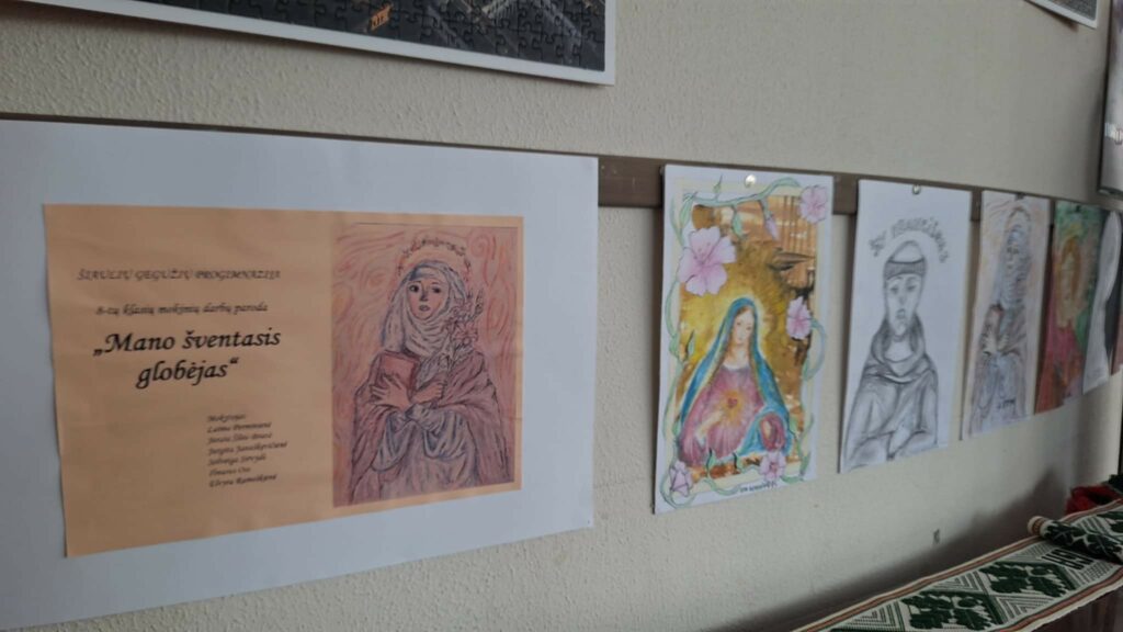 Mokinių darbuose atsiskleidžia jų žvilgsnis į šventųjų pavyzdį, tikėjimą ir vertybes šiuolaikiniame pasaulyje. Paroda kviečia susimąstyti, kas mus įkvepia, globoja ir kokias vertybes nešamės į kasdienybę.