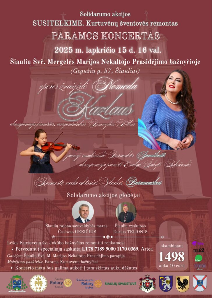 Speciali paramos sąskaita:Gavėjas: Šiaulių Švč. Mergelės Marijos Nekaltojo Prasidėjimo parapijaLT78 7189 9000 1170 0369, AB Artea bankas, mokėjimo paskirtis: Kurtuvėnų bažnyčios remontui.