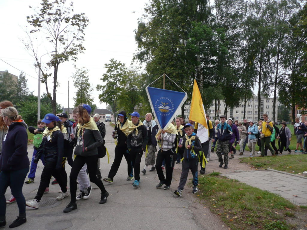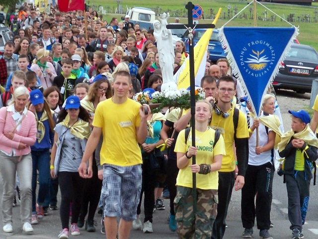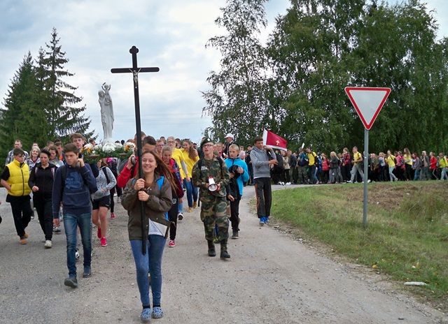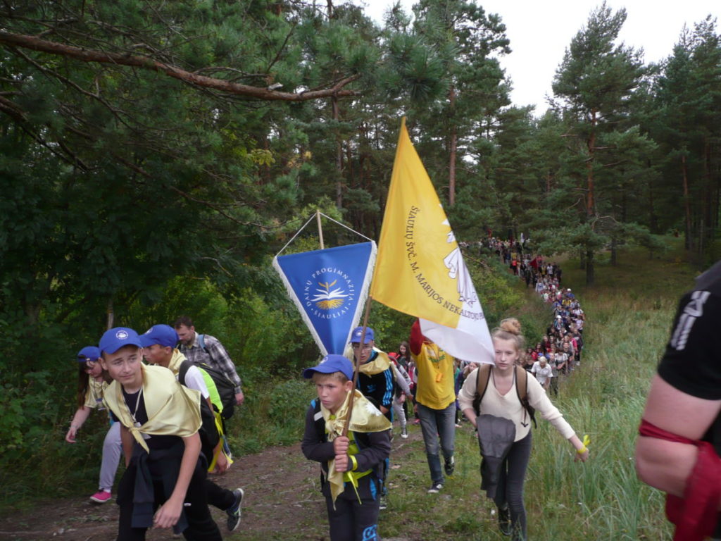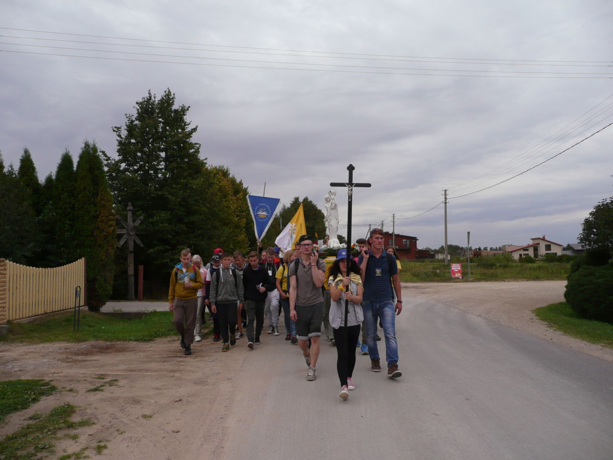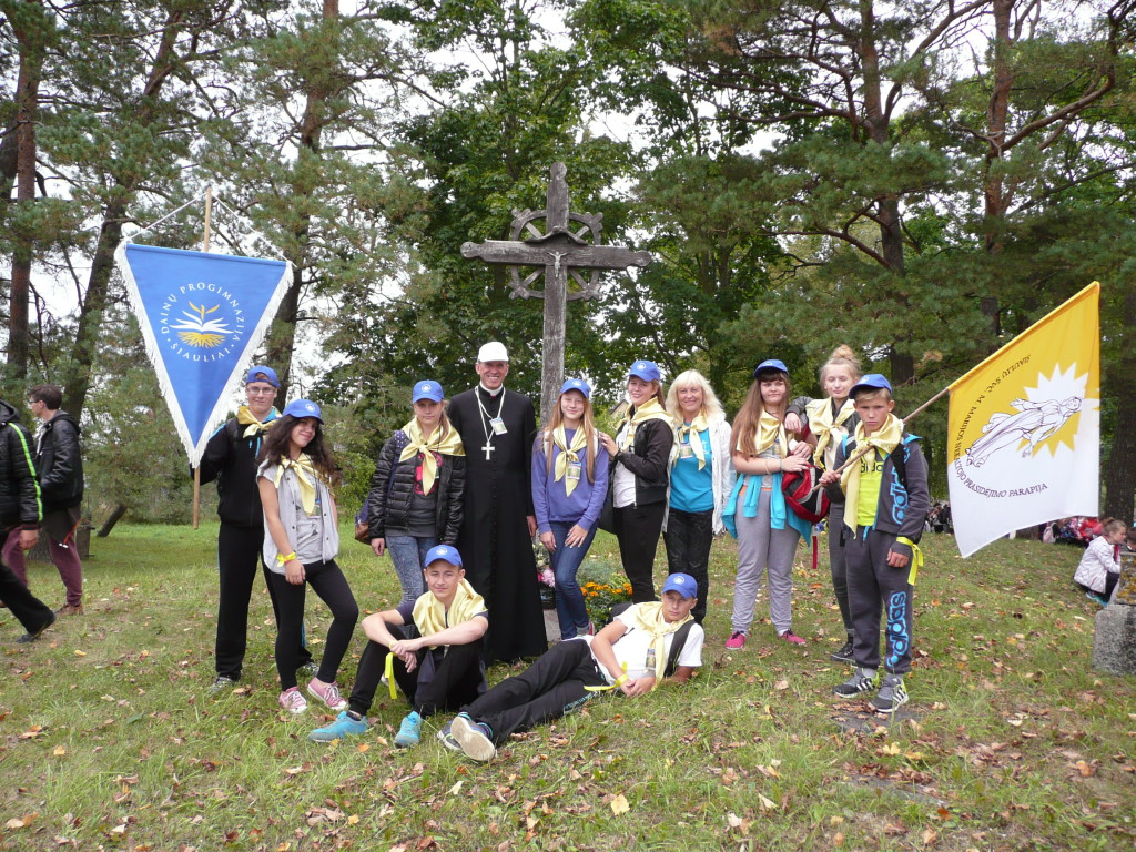 Rugsėjo 4 d., apie 10.00 val., nepaisydami gręsiančio lietaus, su pakilia nuotaika prie bažnyčios rinkosi mūsų parapijos jaunimas pasiruošęs piligriminiam žygiui, kuriam vadovavo J. E. Šiaulių vyskupas Eugenijus Bartulis.