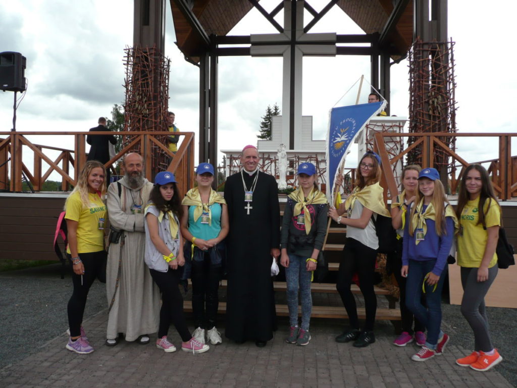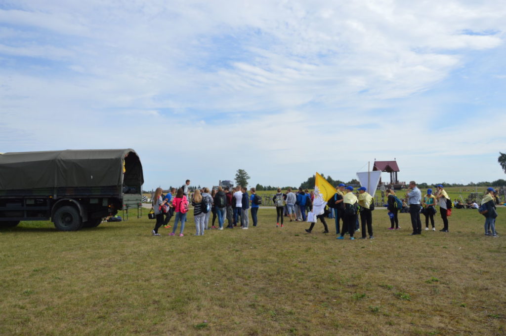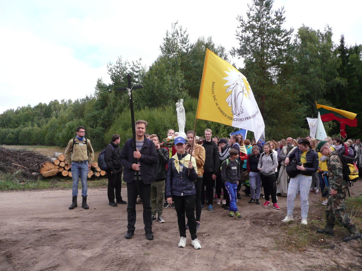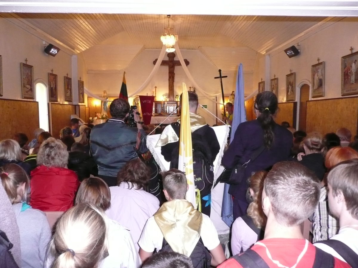 Rugsėjo 4 d., apie 10.00 val., nepaisydami gręsiančio lietaus, su pakilia nuotaika prie bažnyčios rinkosi mūsų parapijos jaunimas pasiruošęs piligriminiam žygiui, kuriam vadovavo J. E. Šiaulių vyskupas Eugenijus Bartulis.