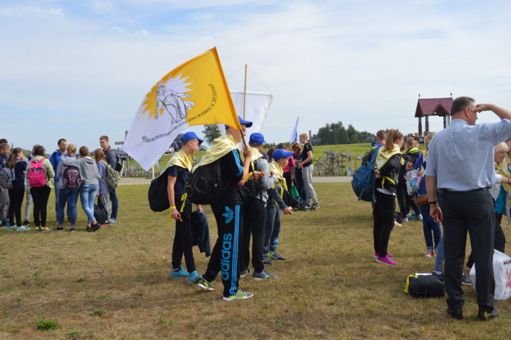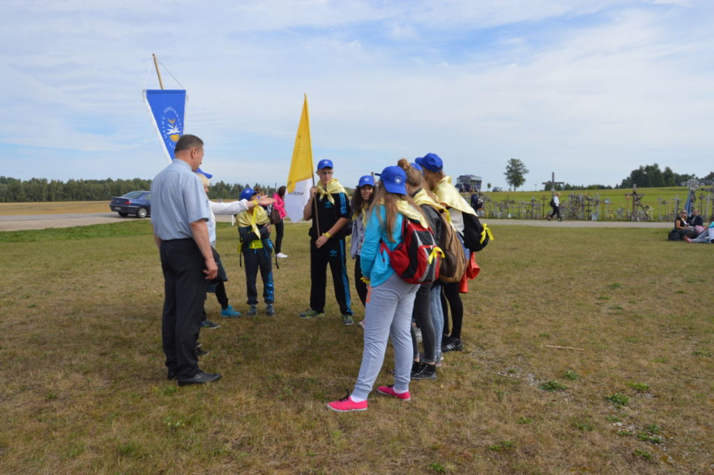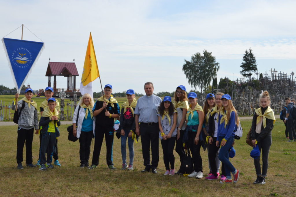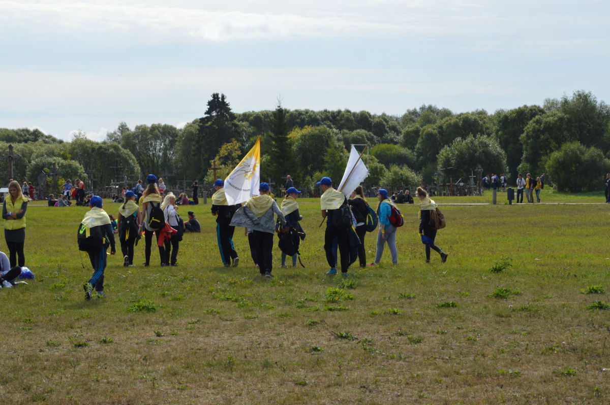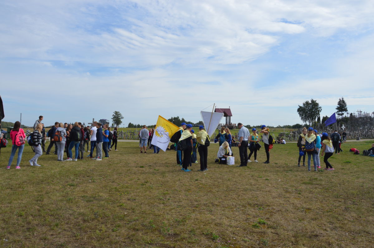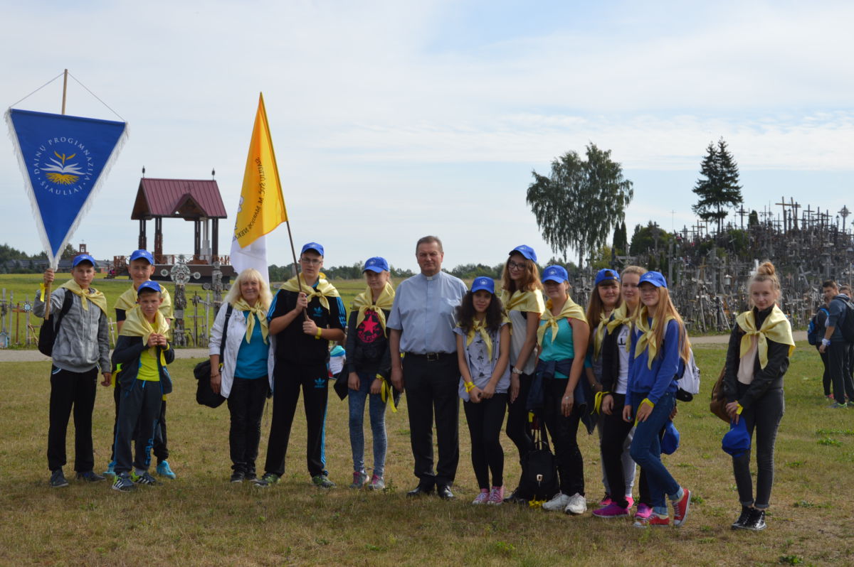 Dėkojame katalikiškos ,,Sandoros“ progimnazijos jaunimo chorui ir jų vadovei Rolandai Kalakauskienei, kurie dalyvavo (giedojo) Kryžių Kalne Šv. Mišiose. ,,Dainų“ progimnazijos jaunimui bei mokytojai Laisvai Jankauskienei, kurie buvo labai gražiai pasipuošę, ne tik su savo bažnyčios skraistėm, bet ir mokyklos gražiom mėlynom kepuraitėm priešakyje nešdami mokyklos bei Švč. M. Marijos Nekaltojo Prasidėjimo parapijos vėliavas. Mūsų parapijos jaunimas, piligriminiame žygyje taip pat dalyvavo savanoriais.