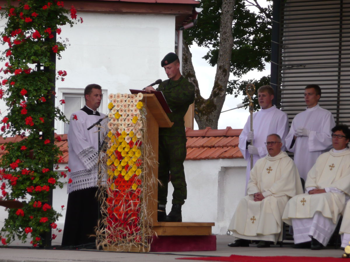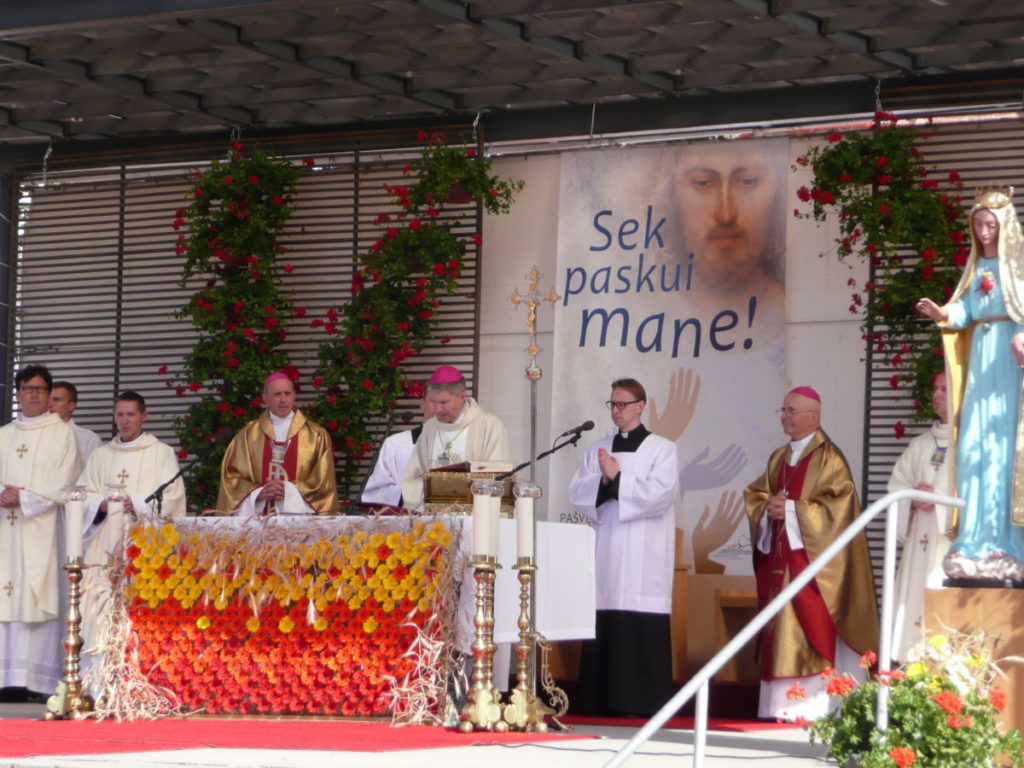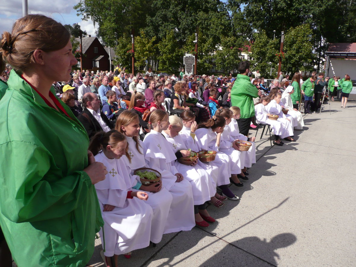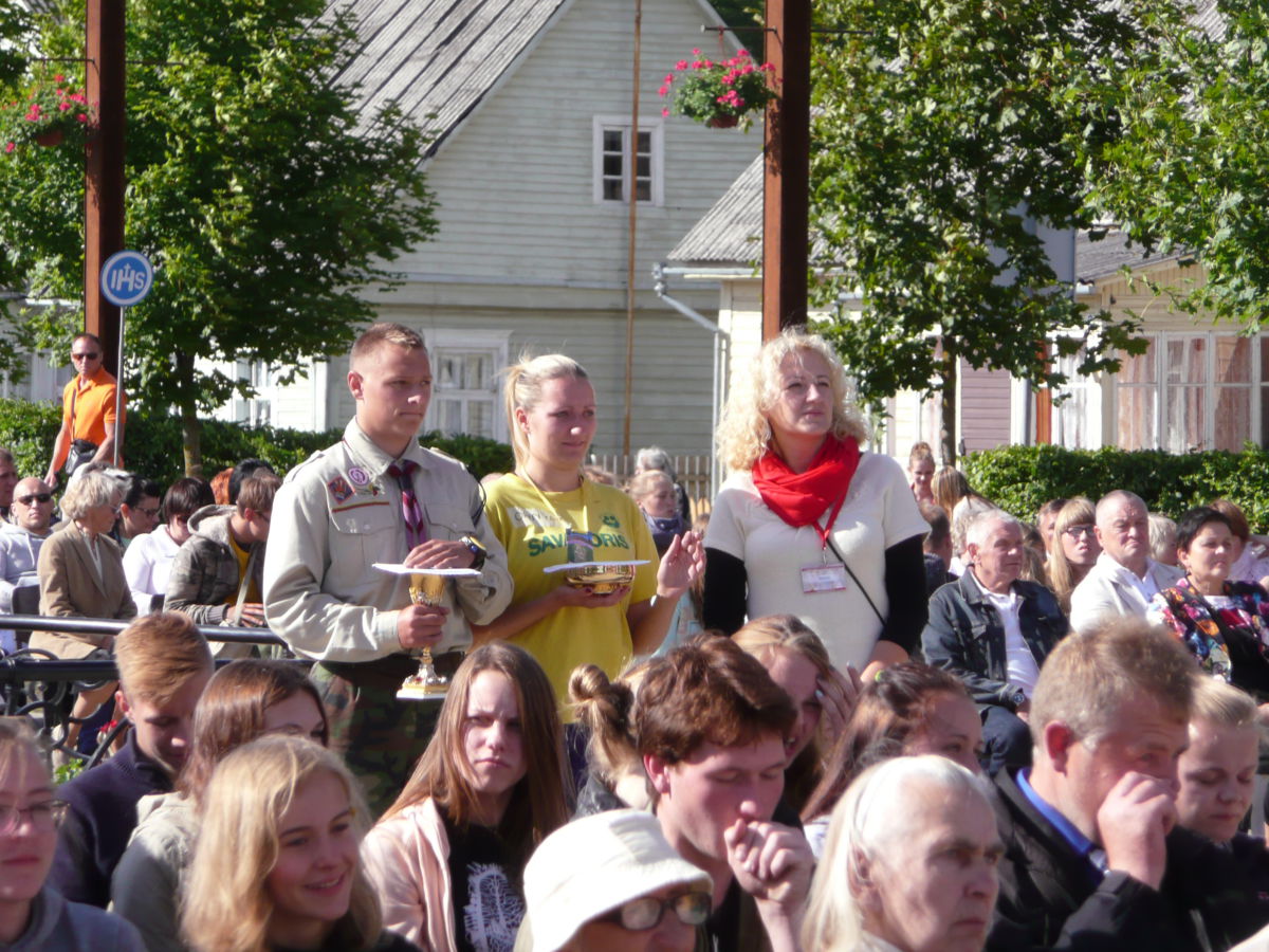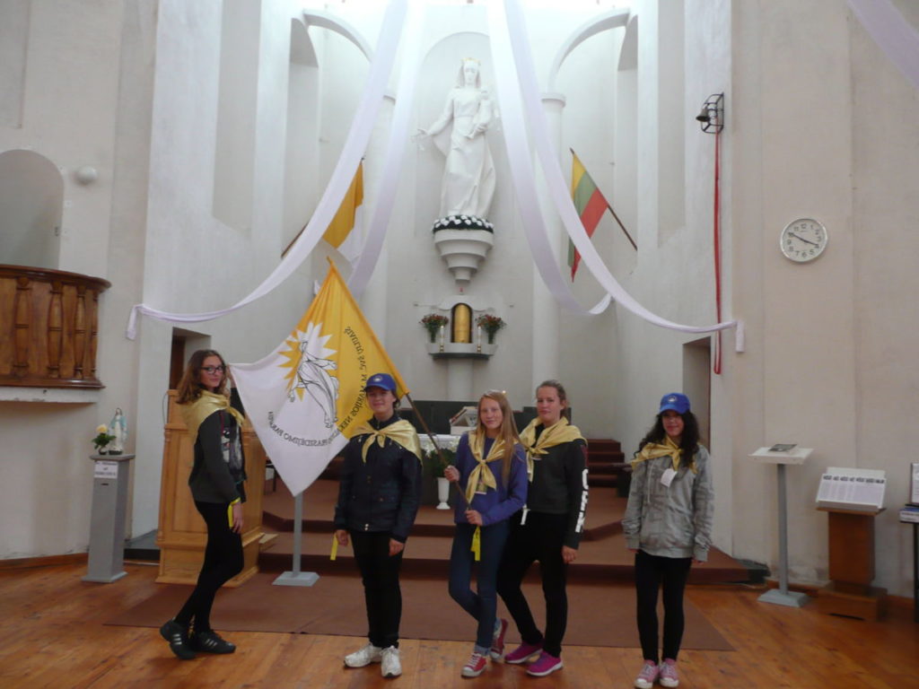 Dėkojame katalikiškos ,,Sandoros“ progimnazijos jaunimo chorui ir jų vadovei Rolandai Kalakauskienei, kurie dalyvavo (giedojo) Kryžių Kalne Šv. Mišiose. ,,Dainų“ progimnazijos jaunimui bei mokytojai Laisvai Jankauskienei, kurie buvo labai gražiai pasipuošę, ne tik su savo bažnyčios skraistėm, bet ir mokyklos gražiom mėlynom kepuraitėm priešakyje nešdami mokyklos bei Švč. M. Marijos Nekaltojo Prasidėjimo parapijos vėliavas. Mūsų parapijos jaunimas, piligriminiame žygyje taip pat dalyvavo savanoriais.