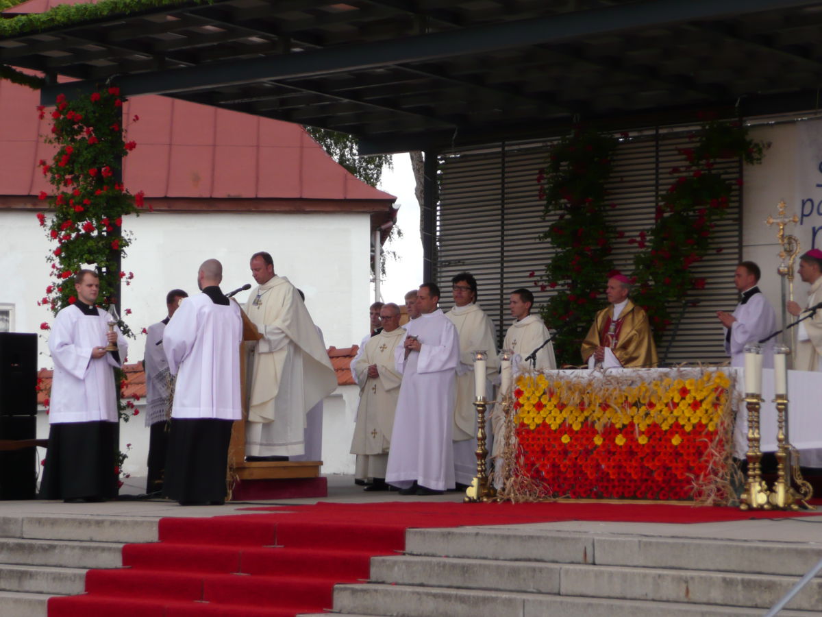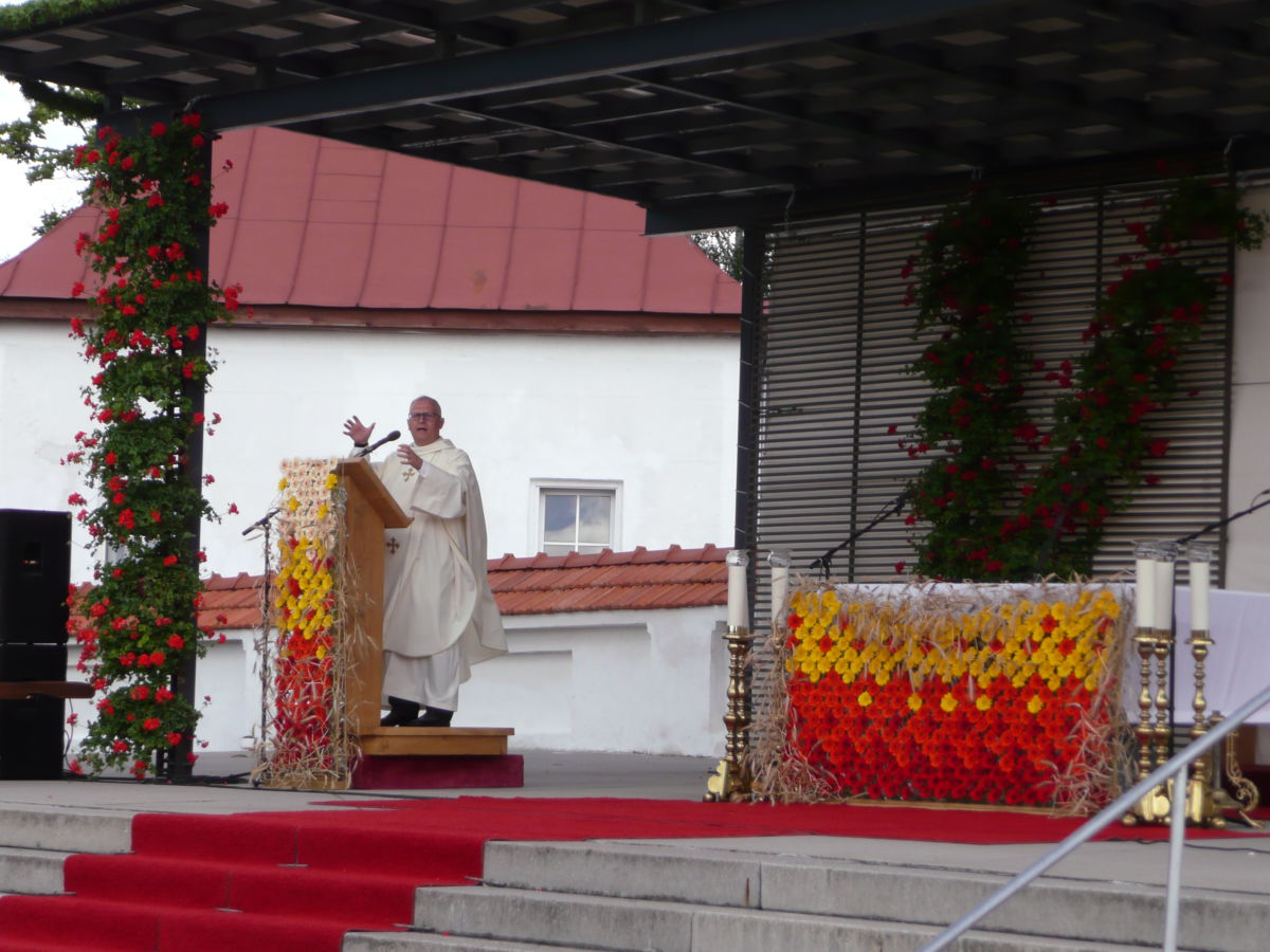 Išvykstančius piligrimus klebonas palaimino ir kelionei įdėjo vaišių.